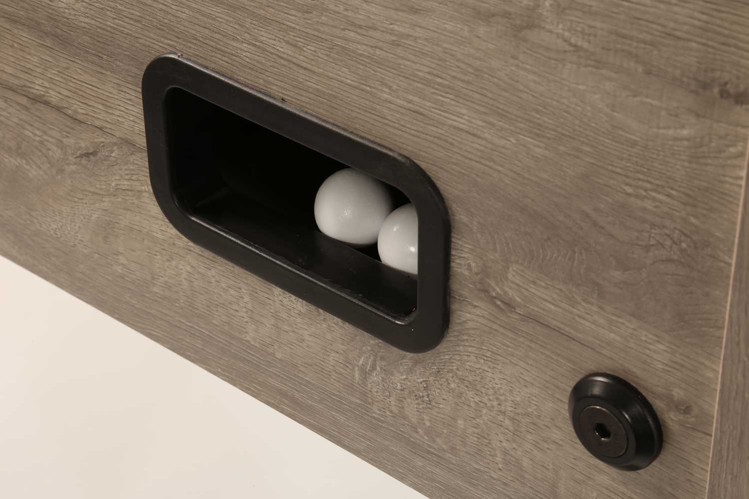 Ausgeliefert wird der Tischfußball mit 10 weißen Kickerbällen (Ø 33,1 mm). Der Korpus ist bereits vormontiert – einfach und schnelle Montage.