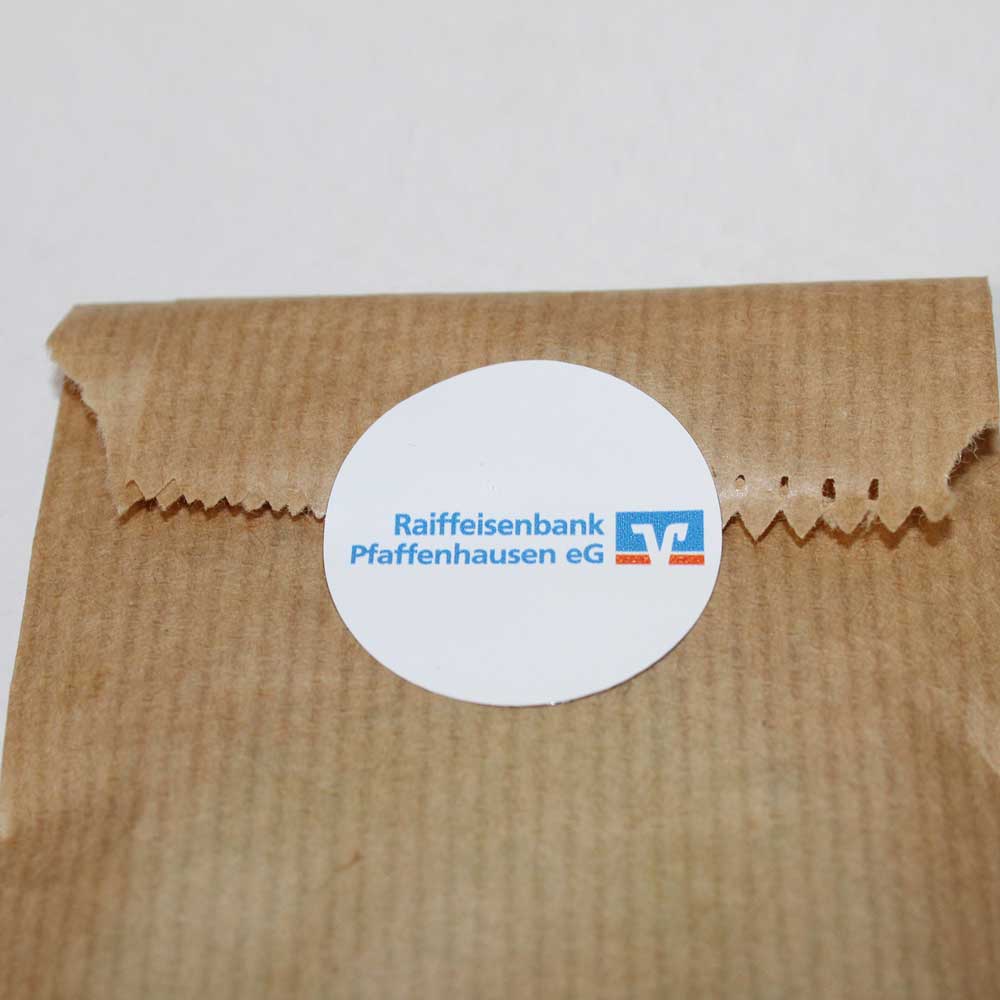 Alternativ und gegen Aufpreis können Sie die Verpackung in einer naturfarbenen Papiertüte mit 4c-bedrucktem Verschlussetikett wählen. Hierbei entfällt der Papiereinleger. Bitte fragen Sie hierzu bei uns an!