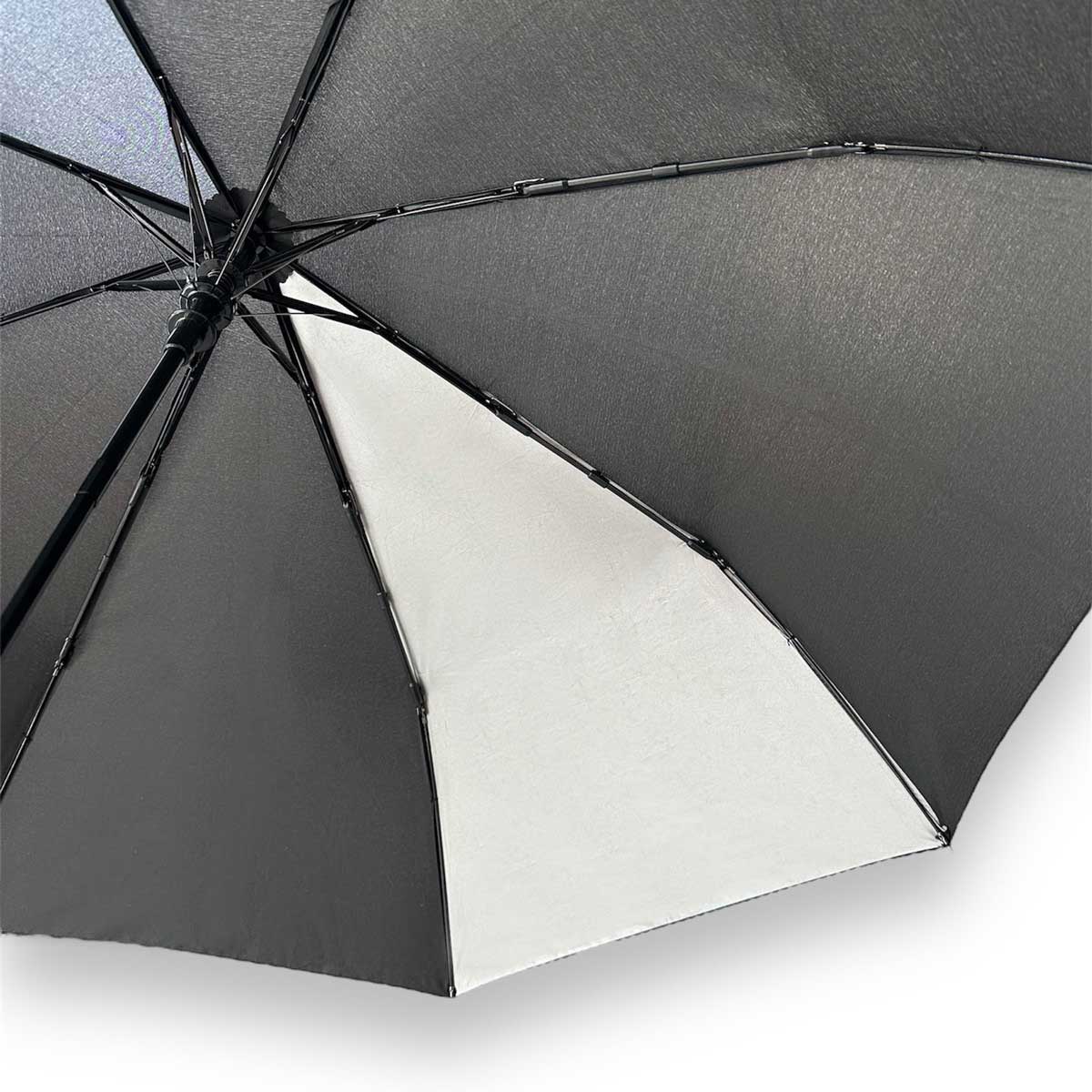 Ein besonderer Blickfang ist das Innere des Schirms - jeweils ein Segment ist entweder in gold oder silber gehalten, während alle anderen Segmente schwarz sind.